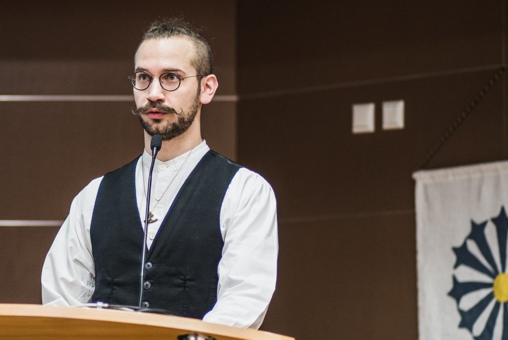 Taivaannaulan sukukansavastaava Patrick O’Rourke välitti tapahtumassa terveiset Suomesta.