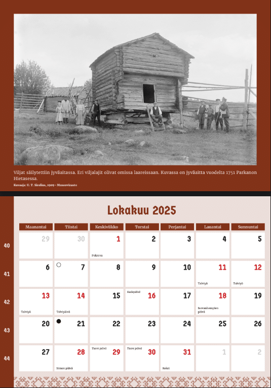 Taivaannaulan perinnekalenteri 2025 on nyt ennakkotilattavissa yhdistyksen verkkokaupassa! Kalenterin toimitukset alkavat lokakuussa.