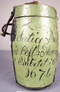 Turun muurariammattikunnan säästölipas vuodelta 1671. Merkintä: Fatig Bössa vid Lofl: Murare Embetet i Åbo 1671. Turun kaupunginmuseo, Creative Commons BY 4.0.