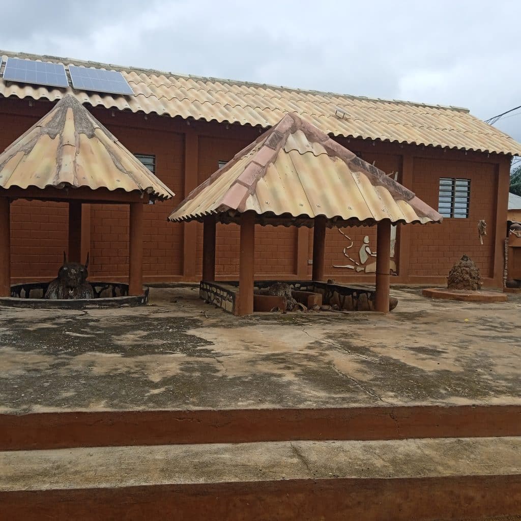 Iltapäivän auringon porottaessa ja nestehukan vaaran väijyessä menimme vielä yhteen kohteeseen, nimittäin paikalliseen Sakpatan temppeliin. Näimme konkreettisen esimerkin valtion ajamasta vodun-temppelien tukemisesta. Temppeli oli kunnostettu uudenkarheaksi ja varustettu moderneilla elementeillä kuten sähkövalaistuksella. Temppelin eteen oli rakennettu vierailijakeskus, jonne suunniteltiin vodunia esittelevä näyttely. Tapasimme temppelin papin, joka oli Sakpatan temppelin suojelija kolmannessa polvessa.