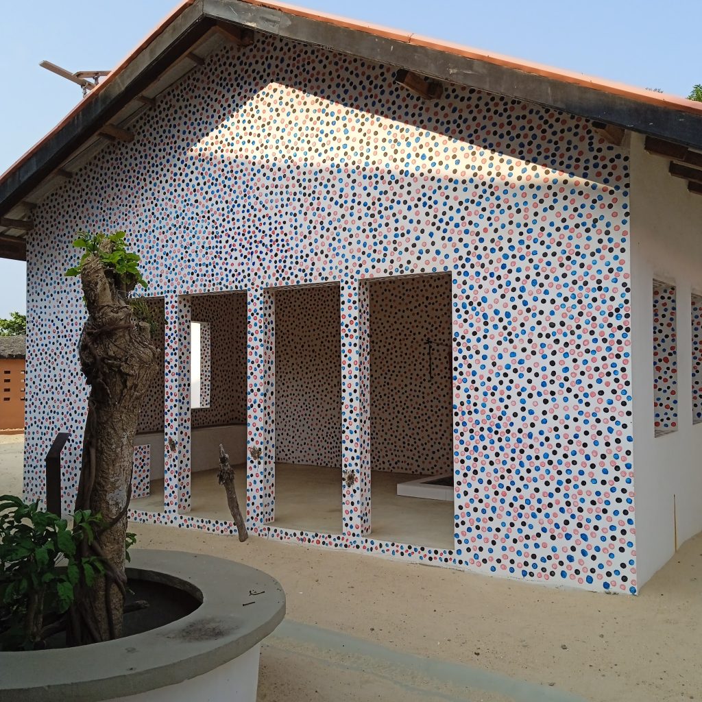 Voimakkaan ja väkevän vierailun jälkeen jatkoimme päivän ohjelmaa menemällä tutustumaan Vodun Days-festivaalin tapahtumapaikkaan. Meren rannalla sijaitseva areena on keskellä rakennuskompleksia, joka liittyy sekä orjakauppaan että voduniin. Areenassa järjestetään Vodun Days-festivaalin aikaan zangbeto-henkien ja muiden naamioituneiden hahmojen juhla. Itse suurseremonia, johon meidät kutsuttiin, järjestetään areenan viereen rakennetulla lavalla. Tästä kuitenkin enemmän kertomuksen toisessa osassa.